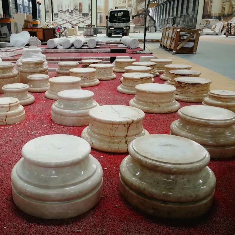 Custom home project Roman white marble column base, outdoor building marble & granite decorative sculpture column bases. Exterior roman column GRC Bases