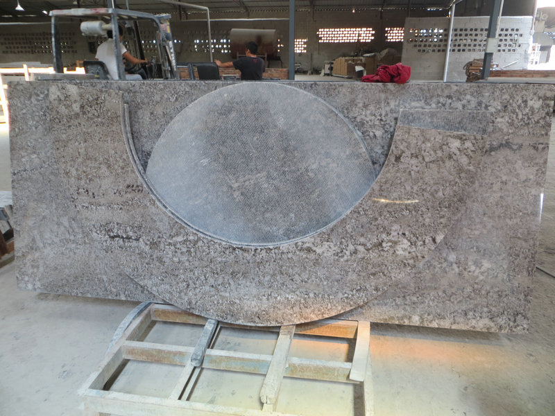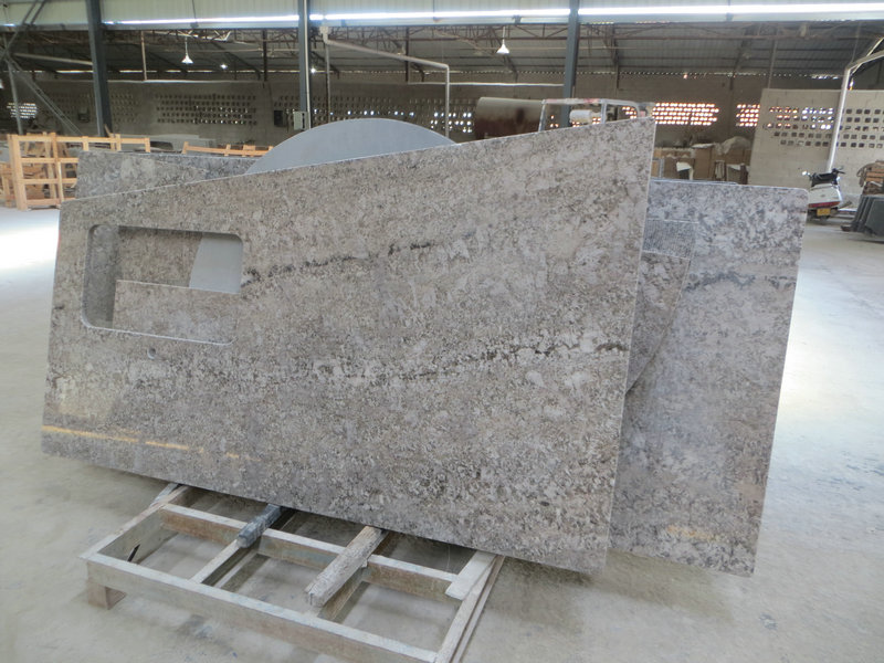 Aran White Granite Countertop has a beautiful white background with widespread many color combinations. They are such as grains and veins of brown black and grey flecks in it. In general white granite countertops colors have enough dark color spots to create accent of contrast for your dream kitchen projects.