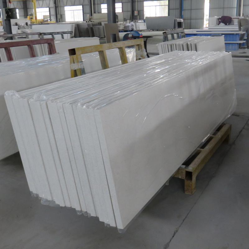 Stone pearl white quartz counter top with bathroom vanity, Standard marble slab size large grain quartz stone,cheap color quartz for countertop and vanity