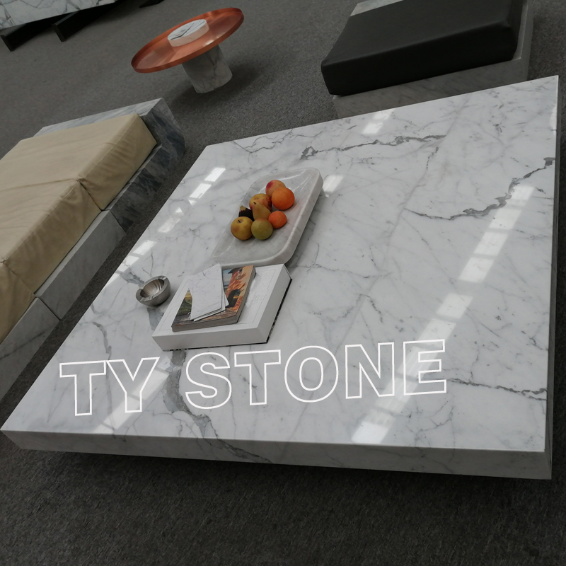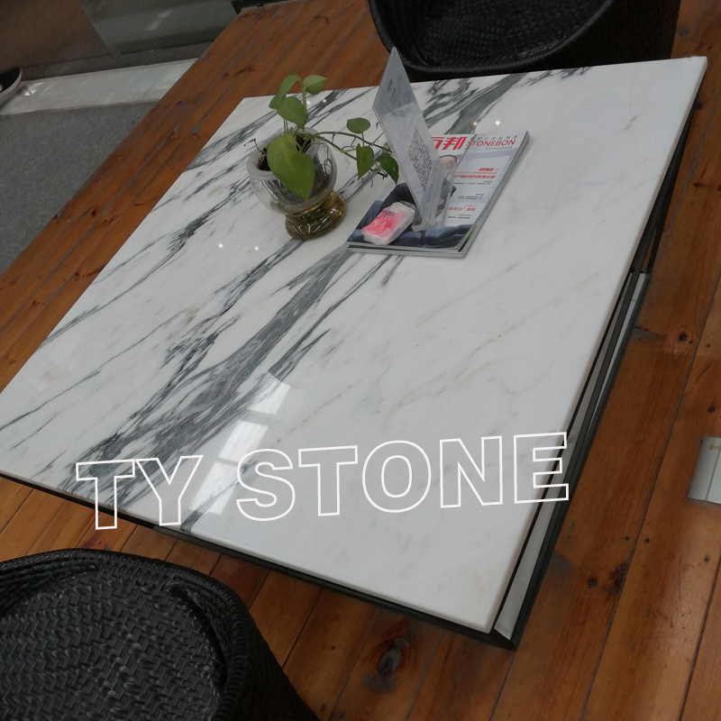 Stone top dinning tables top natural marble round coffee tables, Calacatta White Marble Top Stainless Steel Metal Leg Coffee Table