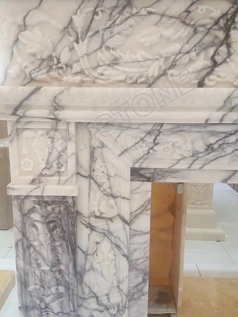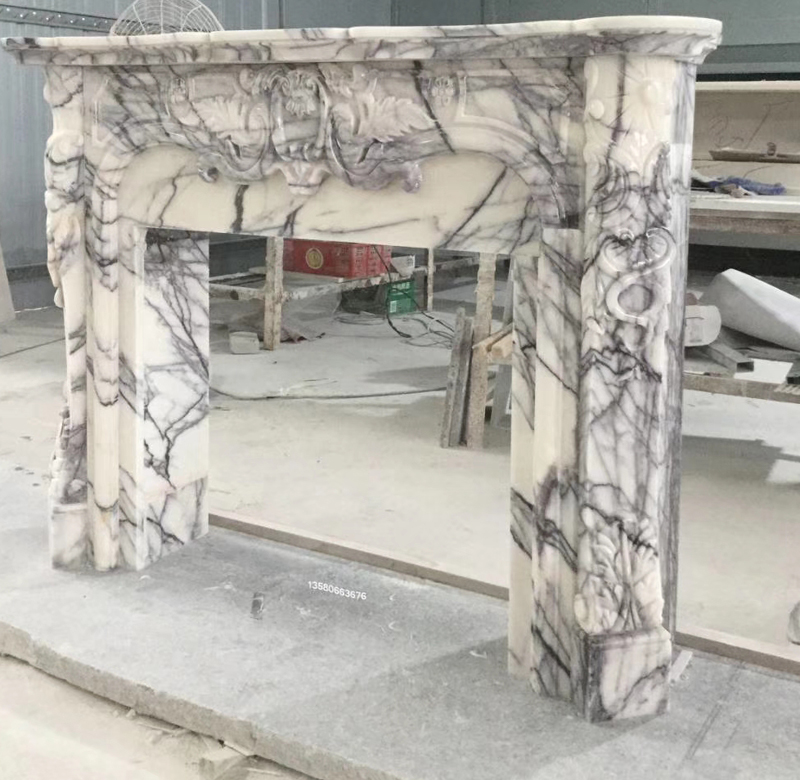 Hand Carved Marble Fireplace Surround Marble Mantel, Custom Italy Arabescato Marble French Indoor Freestanding Fireplace Mantel