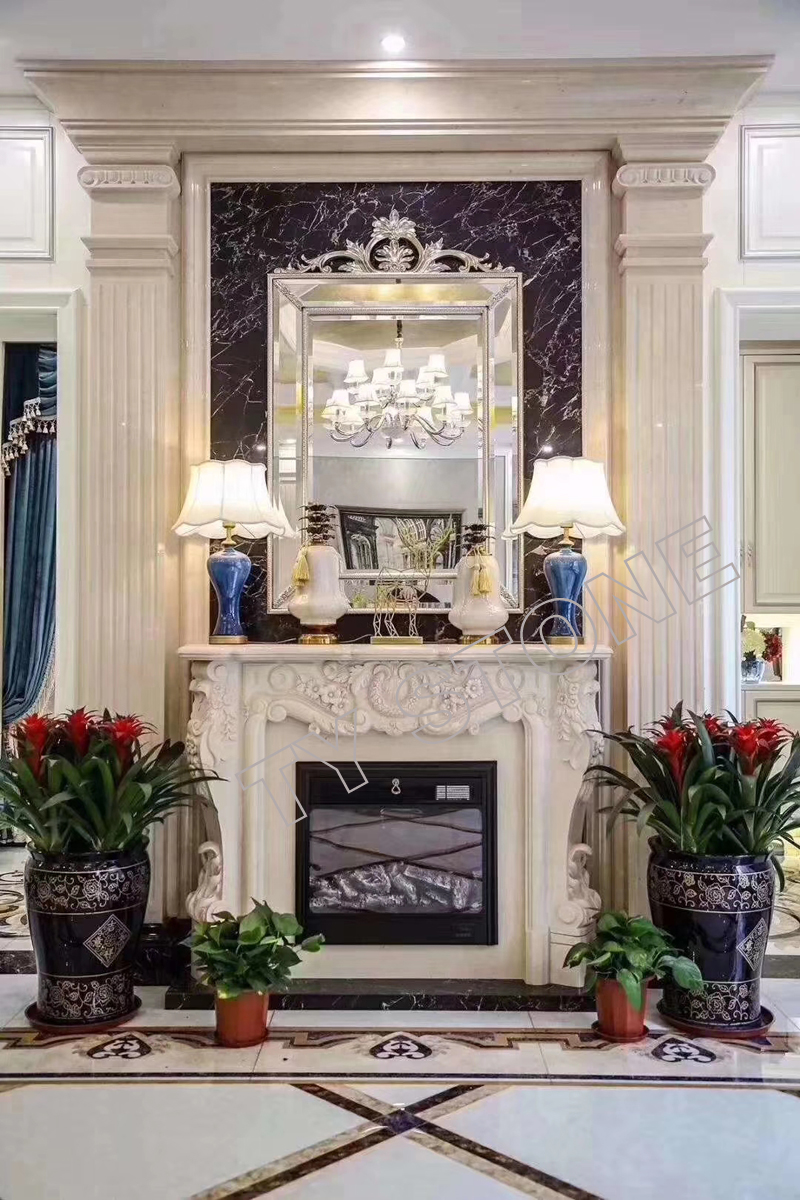 Classic Natural Carving Double Sided Marble Fireplace Surround. Beautiful luxury hand carved white marble fireplace surround