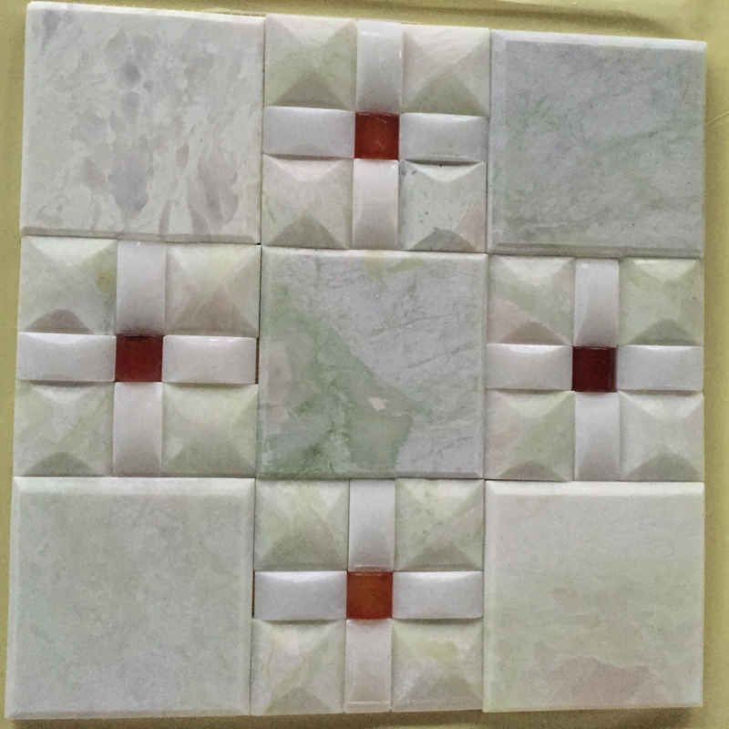 Ming green ,honey onyx, dark emperador, travertine, green marble etc popular colors 3D bread chips mosaic Crema marfil beige marble tiles for interior decoration