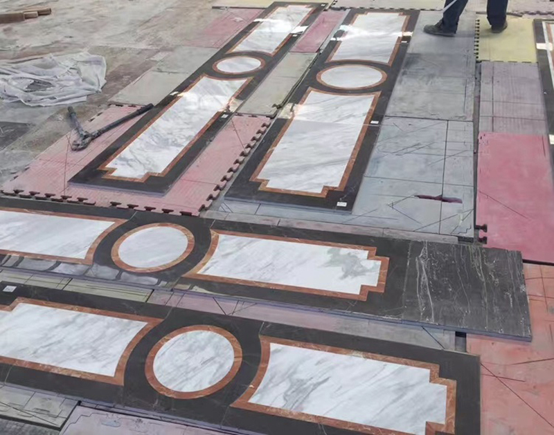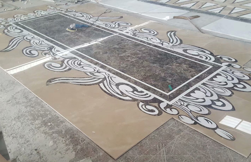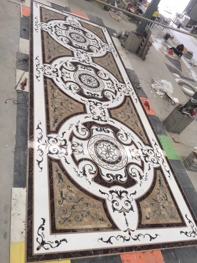 Multi marble rectangle foyer medallion floor, Luxury tile rectangle inlay waterjet marble floor medallion for lobby. Magic Rectangle Marble Waterjet Medallions pattern for floor