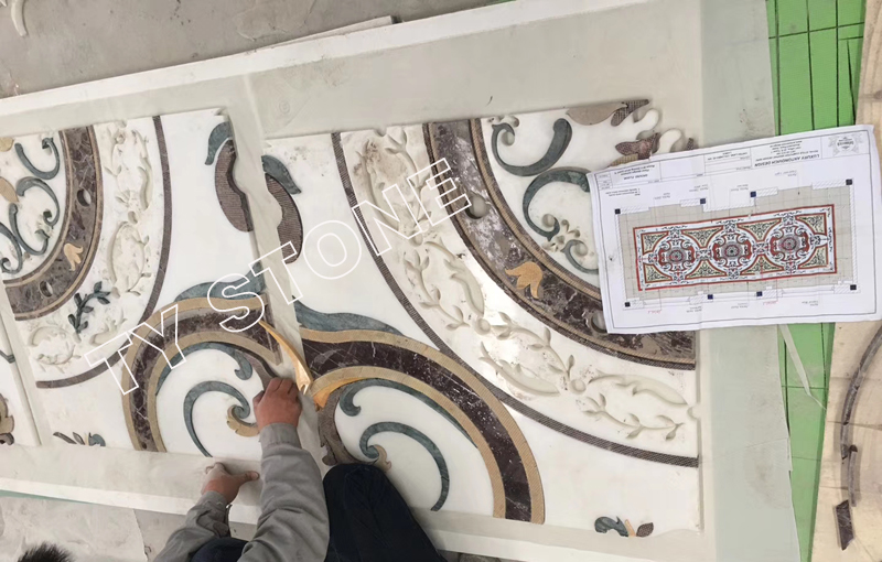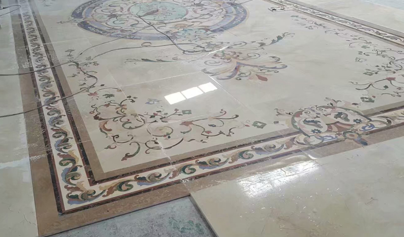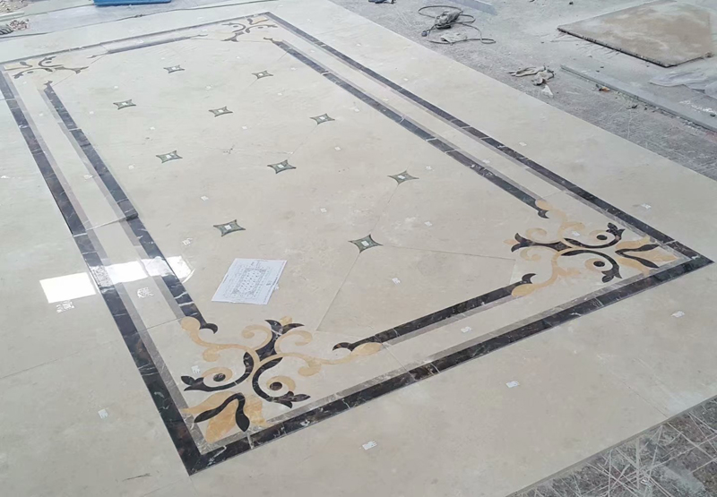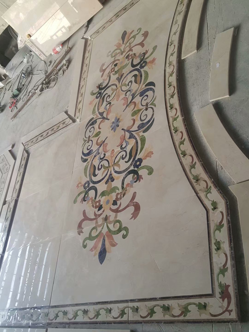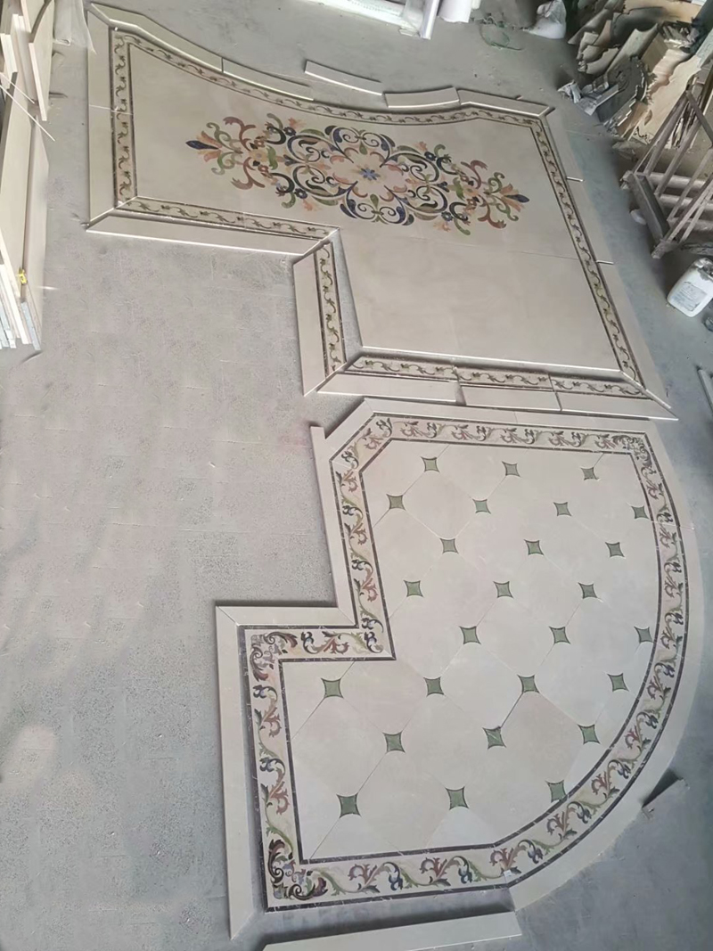Custom floor tile design classic water jet medallion marble For Luxury Living Room Interior. Water jet marble floor flower tile design medallion