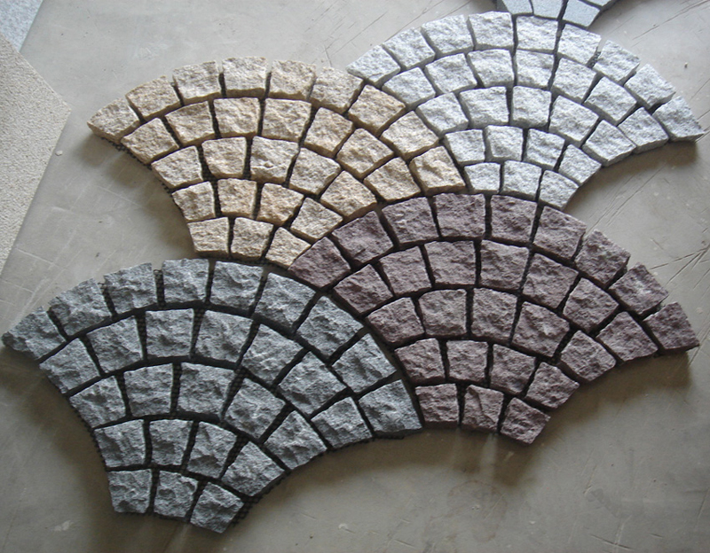 China Granite Fan Shaped Paver On Mesh