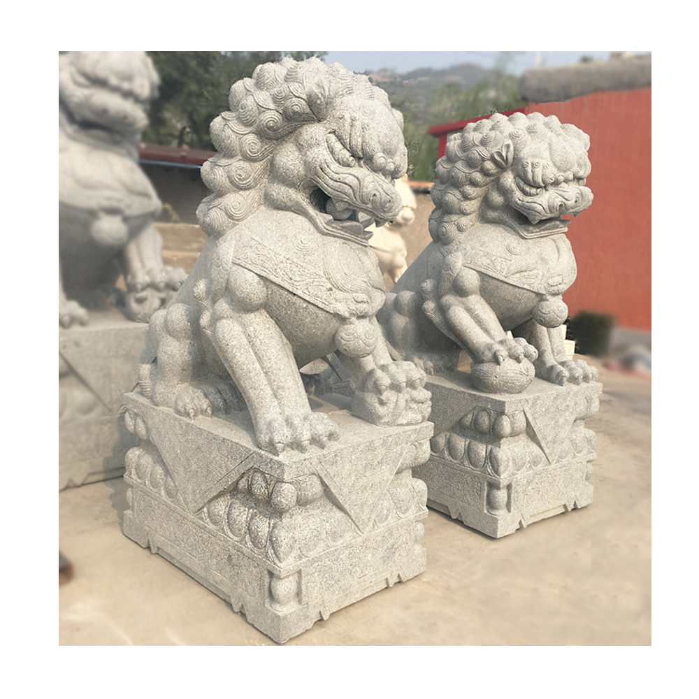 Carved white marble stone lion statues sculptures