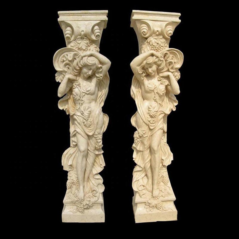 Lady Statue Column Carved Stone Woman Figure Sculpture Pillars for Entrance Gate Porch Decoration.pillar design for gate