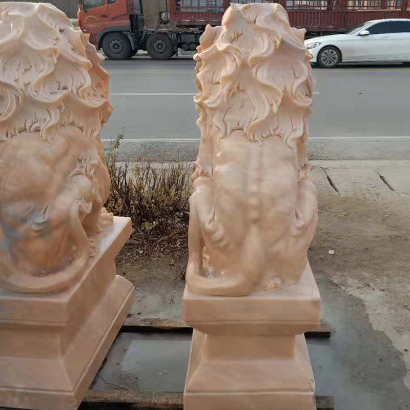 Chinese Stone Lion, Lion Statues,Large Yellow Marble Stone Lions Sculpture