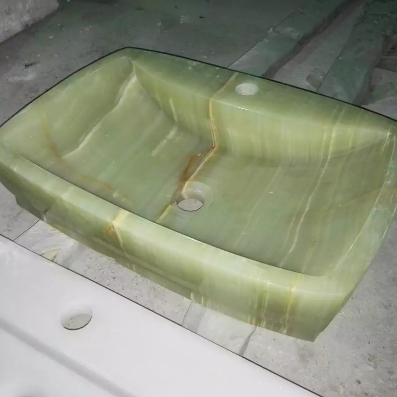 Easy installation rectangular green onyx basin bathroom vessel sink, Luxury Green Onyx Wash Basin Stone Bathroom Sink Stone Vessel Sink
