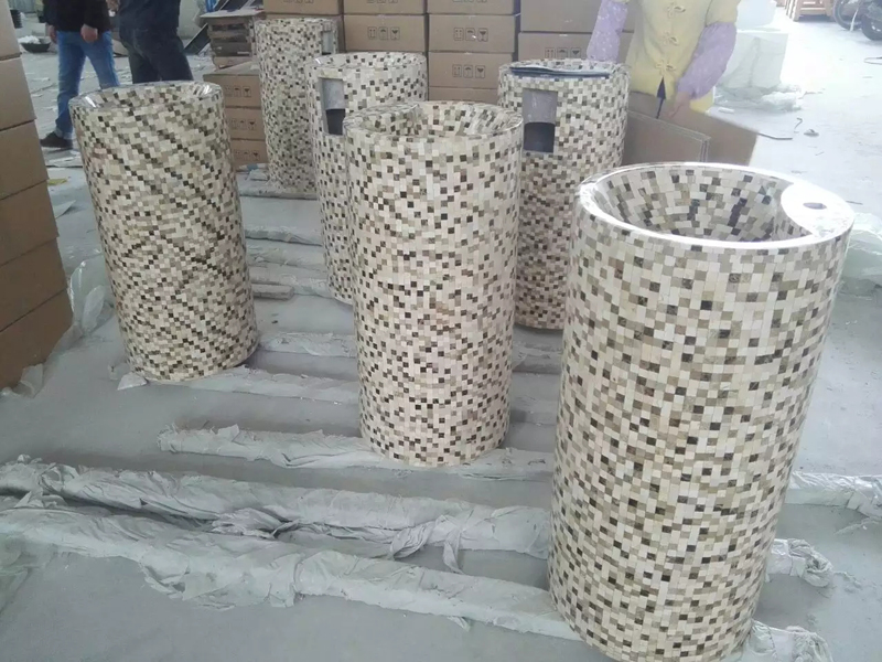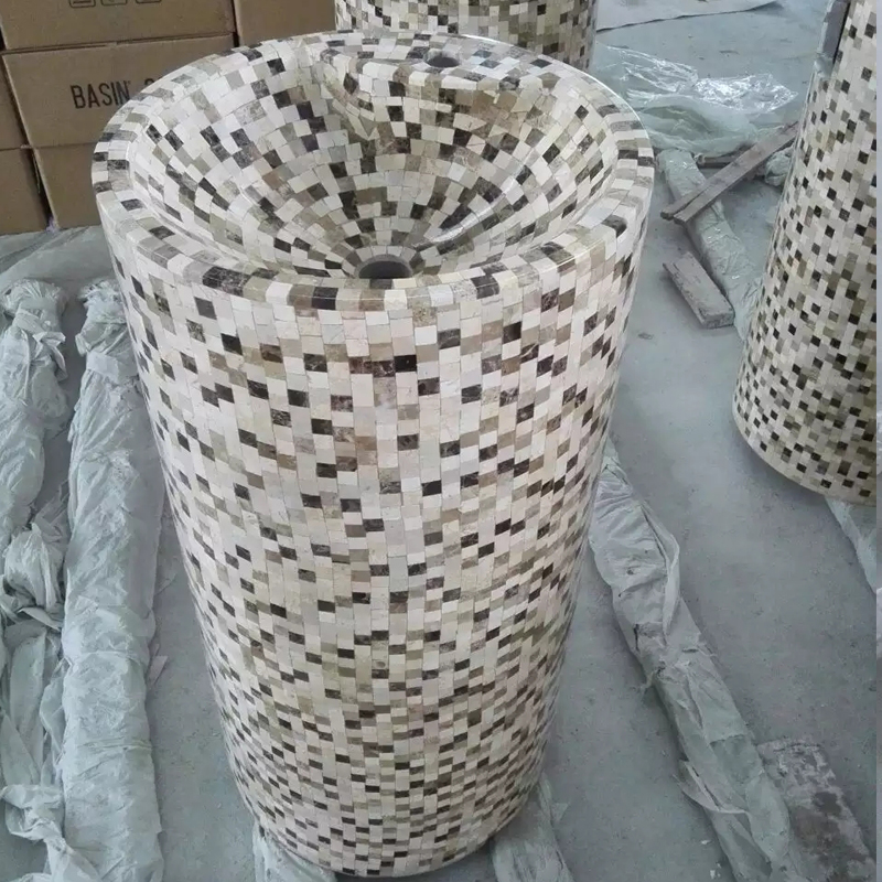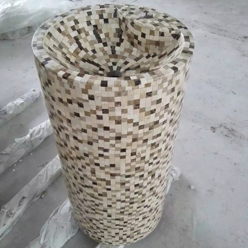 Color Mosaic marble wash basin, Hot sell mosaic pedestal sink marble stone,natural stone